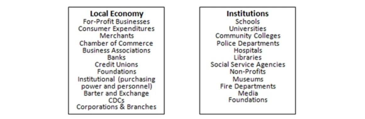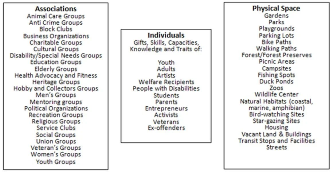 (2) Kretzmann, J., McKnight, J., Dobrowolski, S., Puntenney, D. “Discovering Community Power: A Guide to Mobilizing Local Assets and Your Organization’s Capacity.” Asset-Based Community Development Institute (2005): 15.