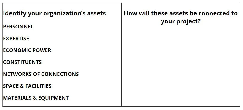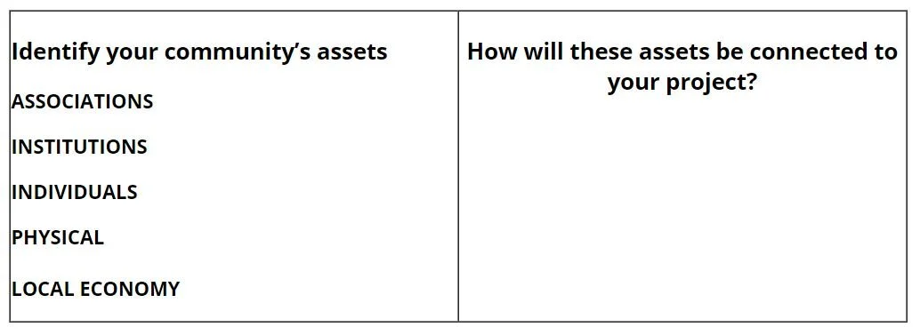 YOUR COMMUNITY’S ASSETS + YOUR ORGANIZATION’S ASSETS = STRONG COMMUNITY-BASED PROJECTS